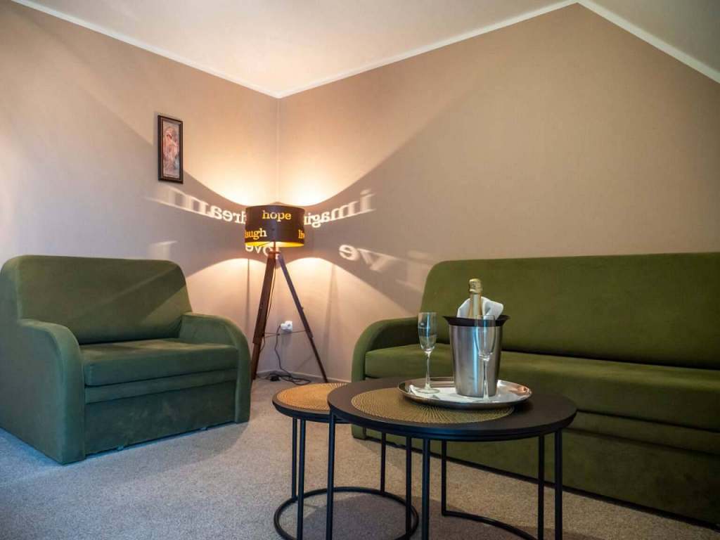 Společenská místnost s barem, mikrovlnou troubou, sporákem, rychlovarnou konvicí, kávovarem, myčkou nádobí. Kromě pohodlného ubytování lze využít k odpočinku udržovanou zahradu s výhledem na nejvyšší bod broumovského výběžku – Ruprechtický Špičák (880,2 m. n. m. ). Součástí zahrady je zastřešené letní posezení s krbem. Pro nejmenší hosty je připraveno dětské hřiště s pískovištěm a skluzavkou.