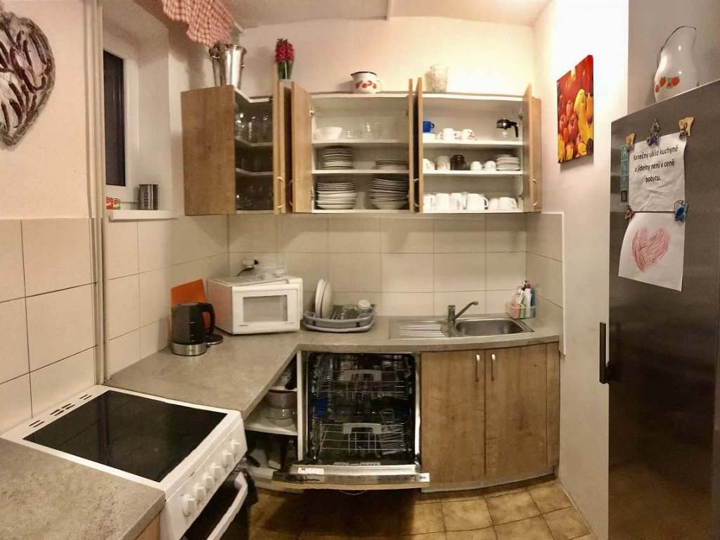 ★k dispozici je společná kuchyně plně vybavená, jídelna. Kuchyně je kromě nádobí vybavena základními spotřebiči - el. sporák, velká lednice, myčka nádobí, kávovar na espresso, mikrovlnka, rychlovarné konvice, toustovač.
