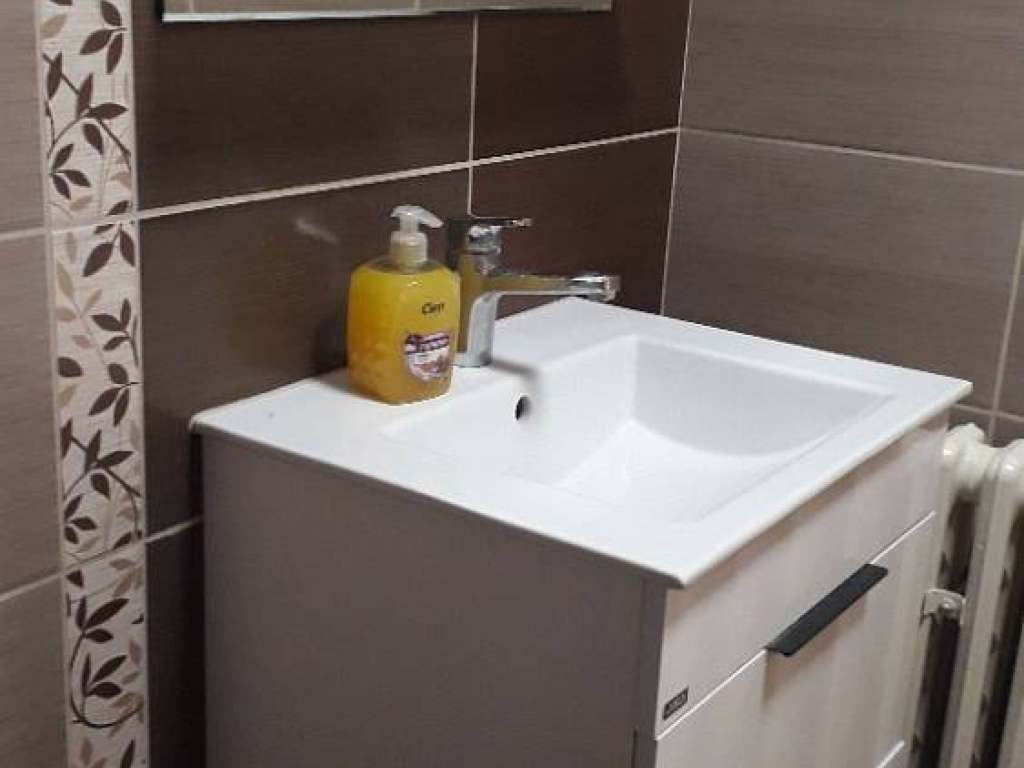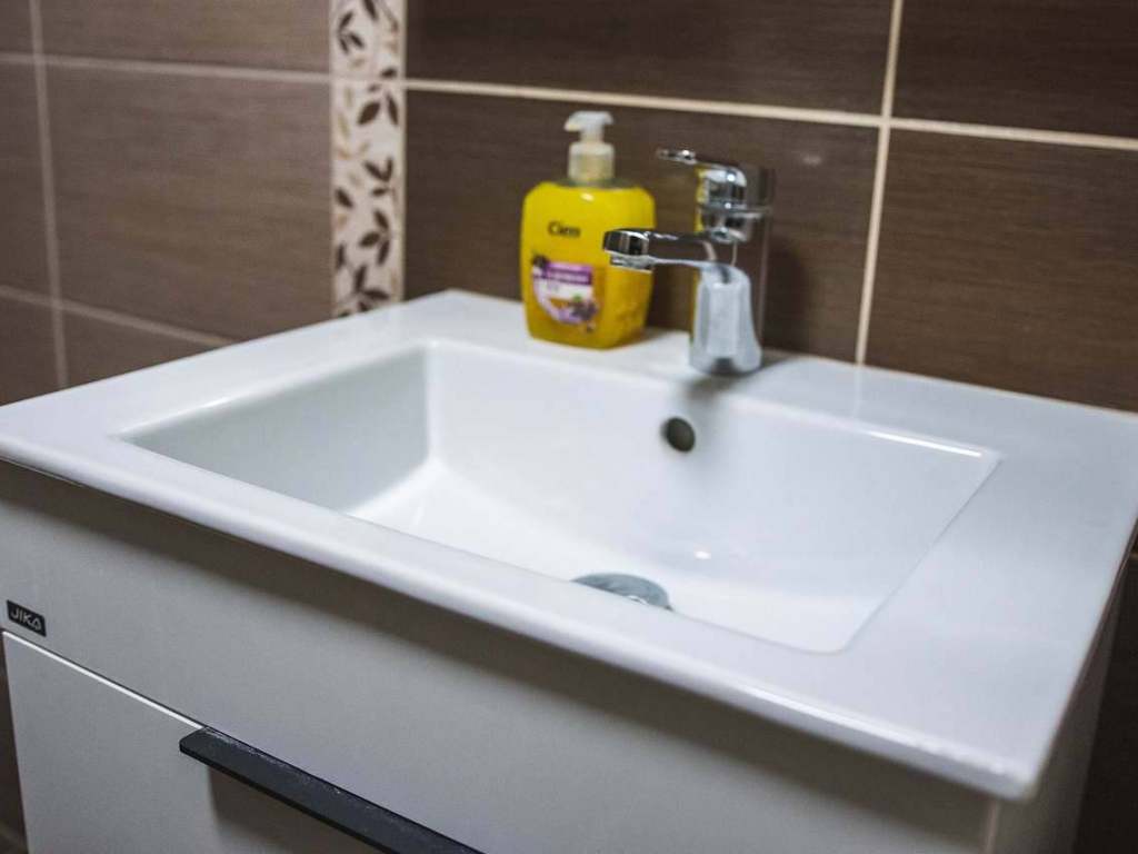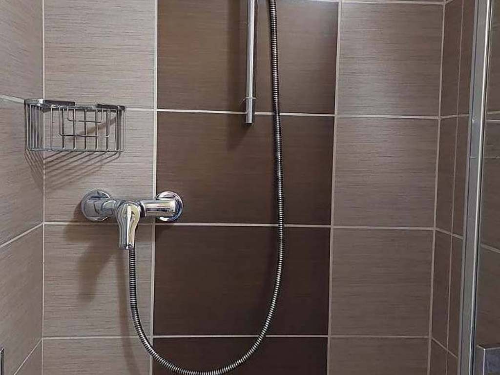 Koupelna se sprchovým koutem, umyvadlem a WC