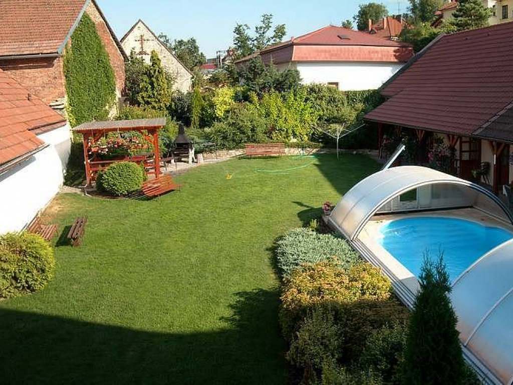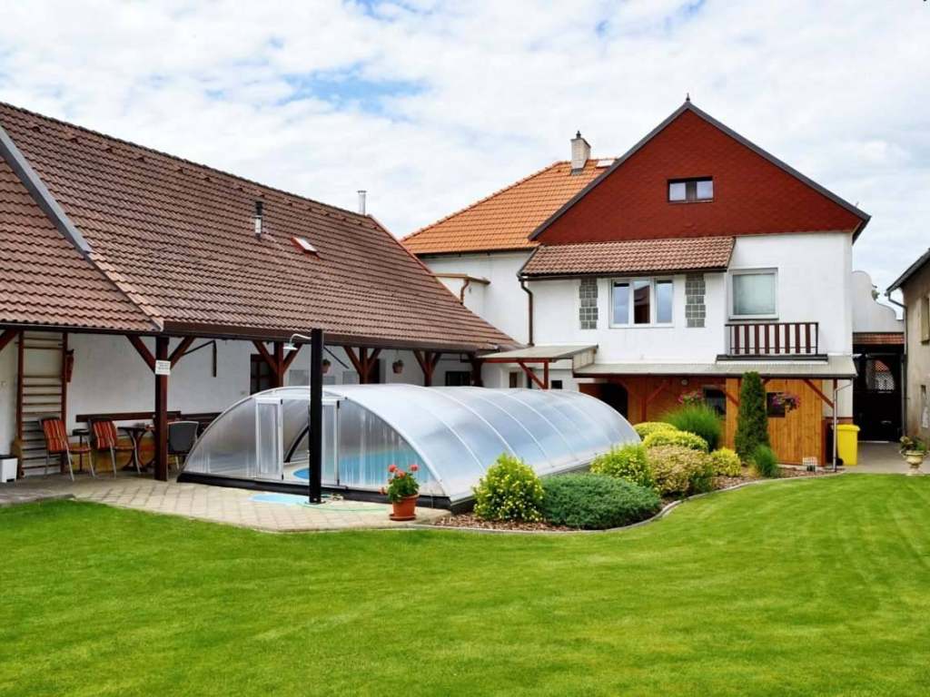 V uzavřeném dvoře je Vám k dispozici venkovní zastřešený bazén 8x4 m s hloubkou 150 cm. Bazén je v provozu od května do září, součástí jsou i lehátka aby Váš pobyt u bazénu byl dostatečně komfortní.