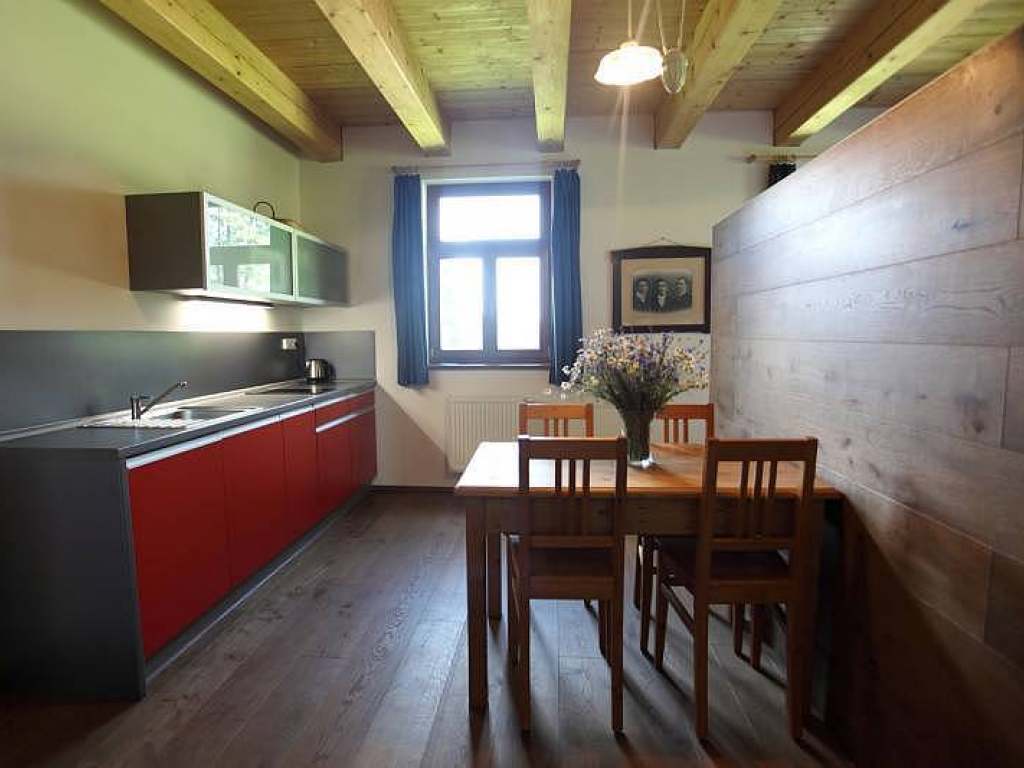 Všechny apartmány mají vybavenou kuchyňku(nádobí, rychlovarná konvice, mikrovlnka, varná deska, lednice s mrazákem). Šestilůžkový apartmán navíc vybaven troubou, digestoří, myčkou. K zapůjčení grill. U objektu ohniště.