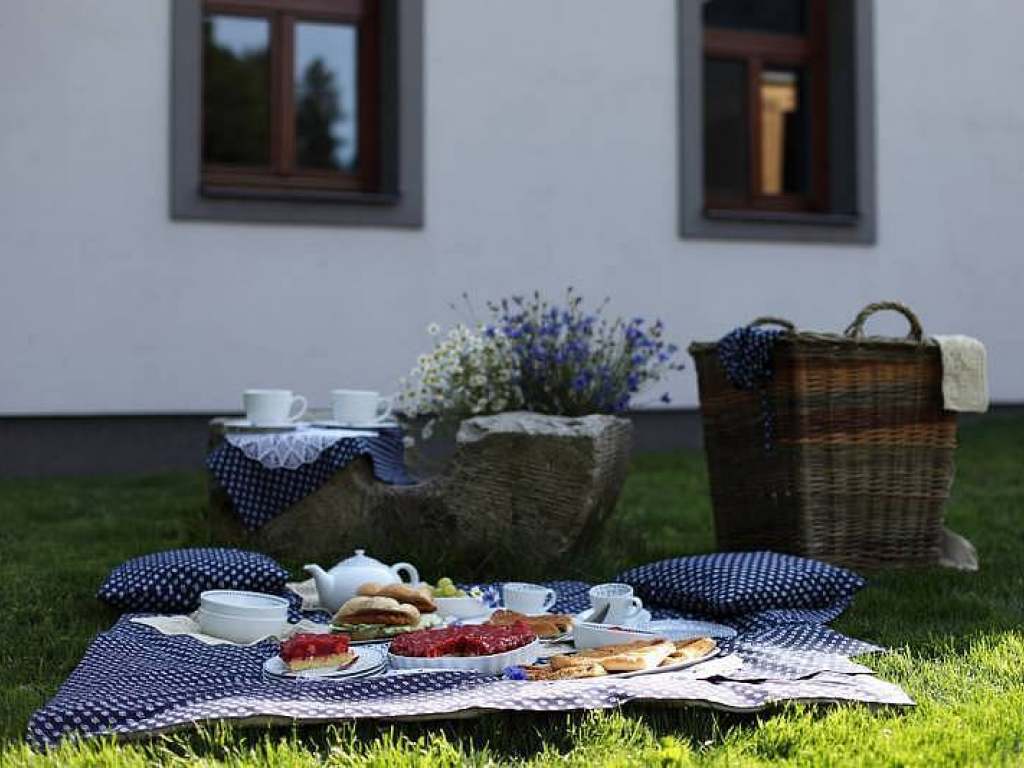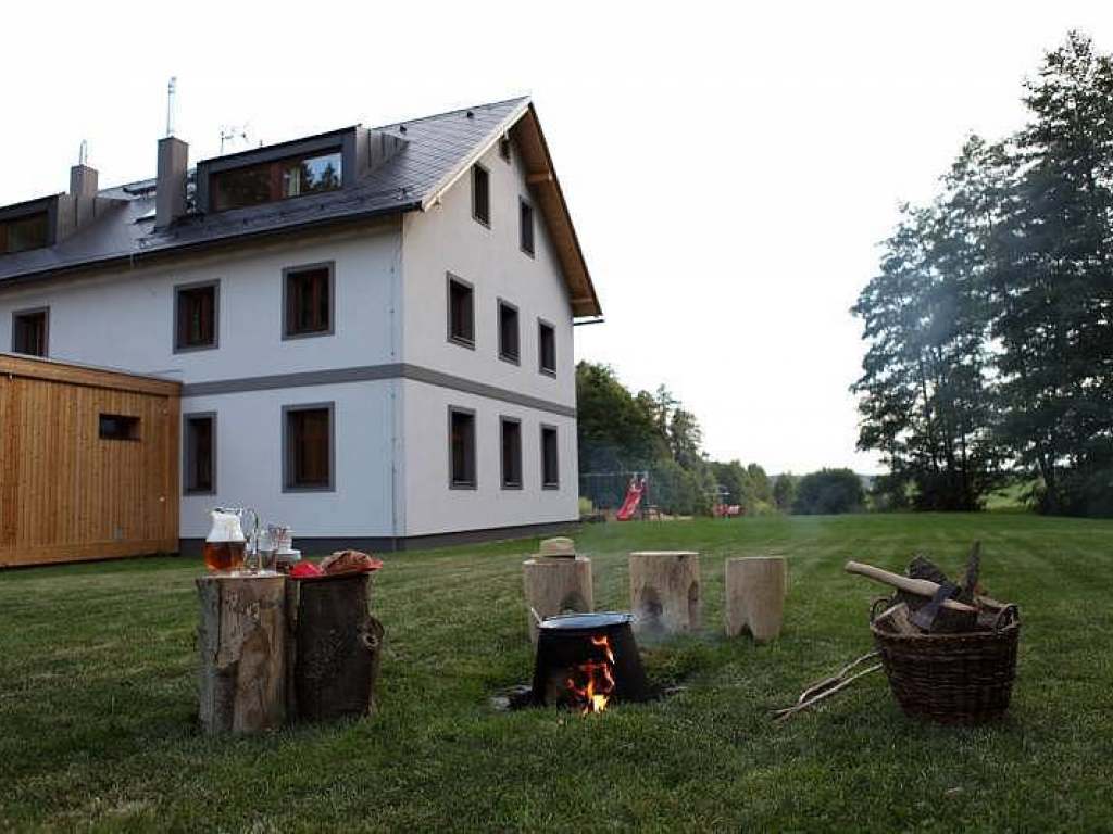 U penzionu je prostorná zahrada, dětské hřiště, ohniště, mělký potůček a les. Je možné si zapůjčit dětské vybavení (postýlky, stupátka, židličky, vaničku, chůvičku, lehátko, přebalovací pult).