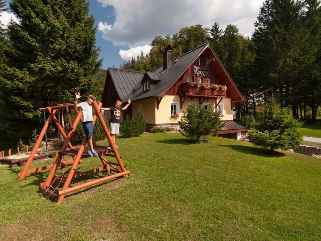 V létě: U penzionu je venkovní posezení s ohništěm a vstupem do Svatopertského potoka. Koupání (cachtání) je možné v parném létě v potoce. Aquapark je pod Medvědínem. Kryté bazény, sauny a další jsou k dispozici v okolních hotelích.
