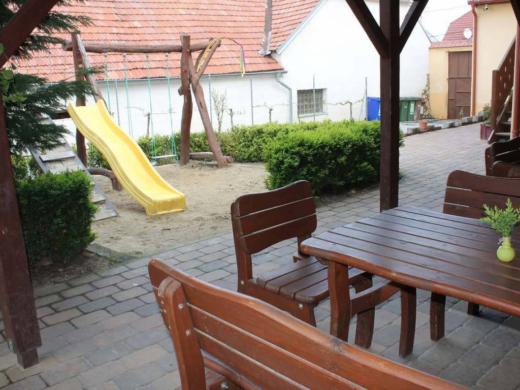 V letních měsících hostům slouží posezení pod krytou terasou kde je krb a gril, hned naproti posezení je vybudován dětský koutek s pískovištěm, klouzačkou a houpačkami, kde budete mít své ratolesti pod svým dohledem. Dále se v uzavřeném dvoře nachází přírodní koupací jezírko s vodopádem, menší část slouží jako brouzdaliště pro děti a větší část příjemně osvěží a schladí v parných dnech hloubka je 2m.