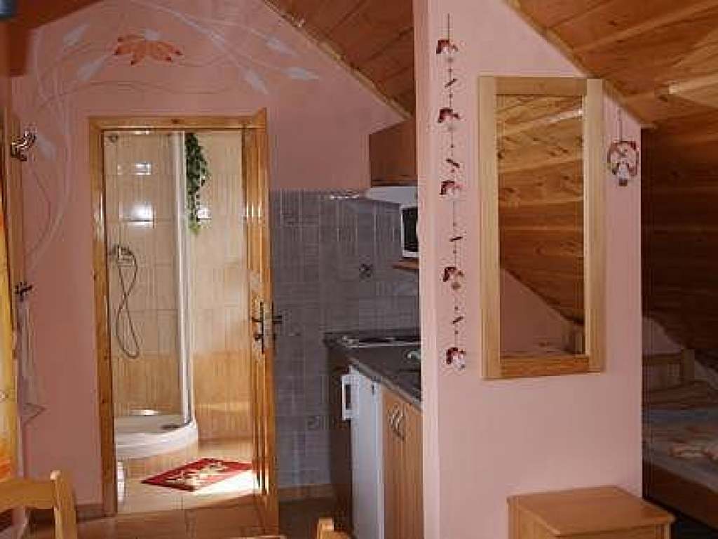 Každý pokoj má manželskou postel a palandou, kuchynsky plně vybavený kout(var. konvice, var. deska, mikrovlnka, lednice s mrazničkou, nádobí)