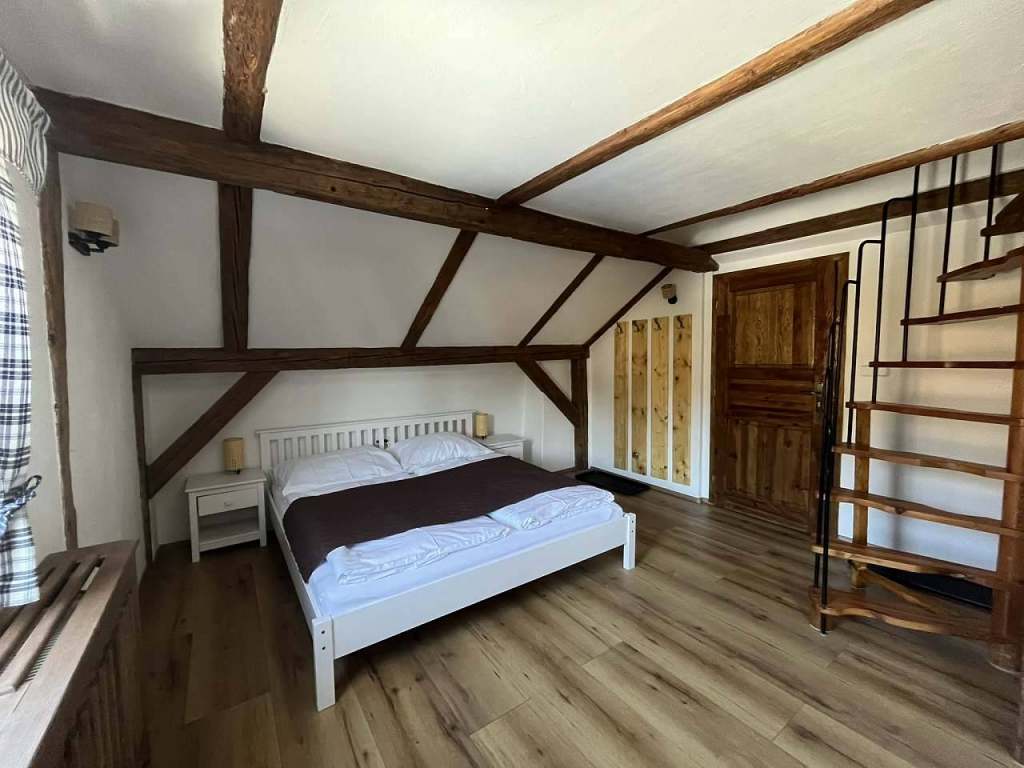 1× dvoulůžkový pokoj, 2× třílůžkový pokoj, 1× čtyřlůžkový pokoj se dvěma oddělenými ložnicemi, 1× čtyřlůžkový mezonetový pokoj.