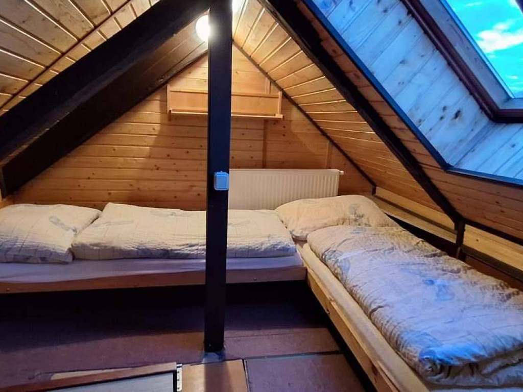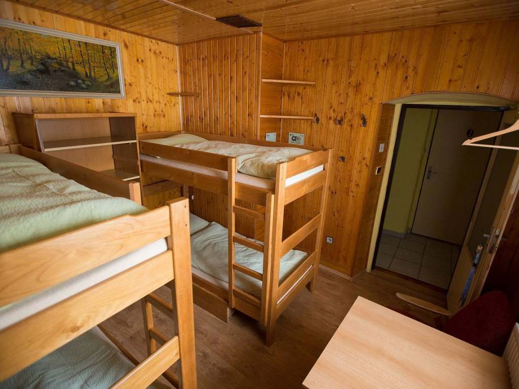 Pokoj č. 2: Čtyřlůžkový pokoj se samostatnou toaletou a společnou sprchou s apartmánem 1.Pokoj je vybaven dvěma dvoupatrovými postelemi a skromným posezením.