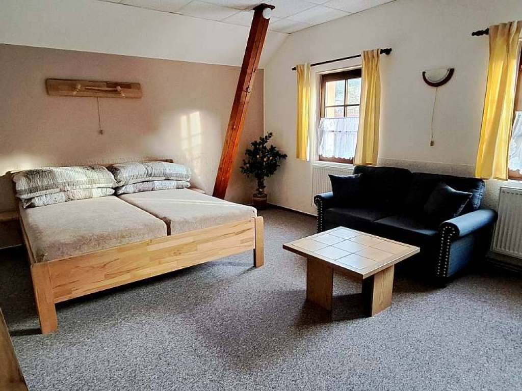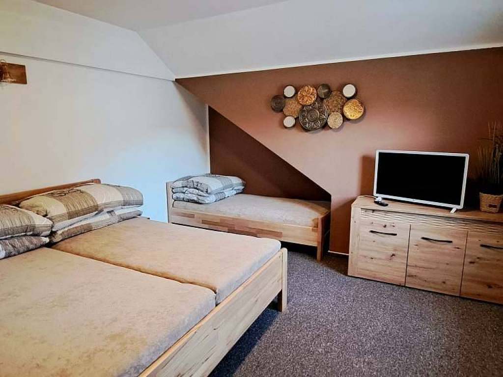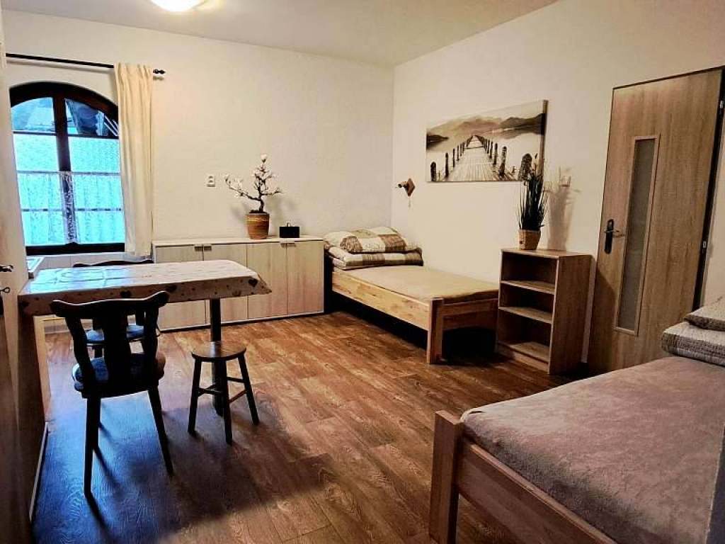 Apartmán č. 1 s vybavenou kuchyňkou, 2 ložnice: 1 manželská postel+ dvě samostatná lůžka (WC, sprchový kout, lednice, ) (vnitřní i samostatný vchod).