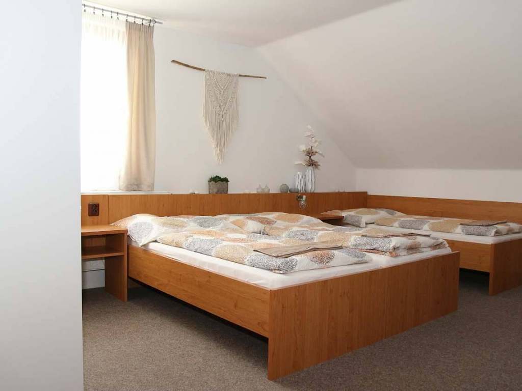 V Penzionu Oříšek se můžete ubytovat ve dvou třílůžkových a jednom dvoulůžkovém pokoji s možností dvou přistýlek.
