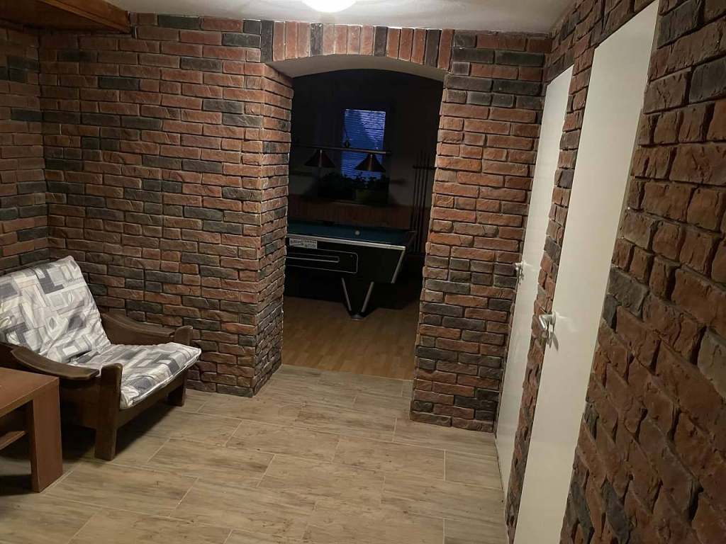 V přízemí domu se nachází společenská místnost s kulečníkem (POOL), stolním fotbalem, šipkami a výčepem. Druhá společenská místnost vybavená velkou nádhernou plně vybavenou kuchyní s televizním 55" koutkem, PS3,vstup do nové koupelny a vstup do dětského pokoje.