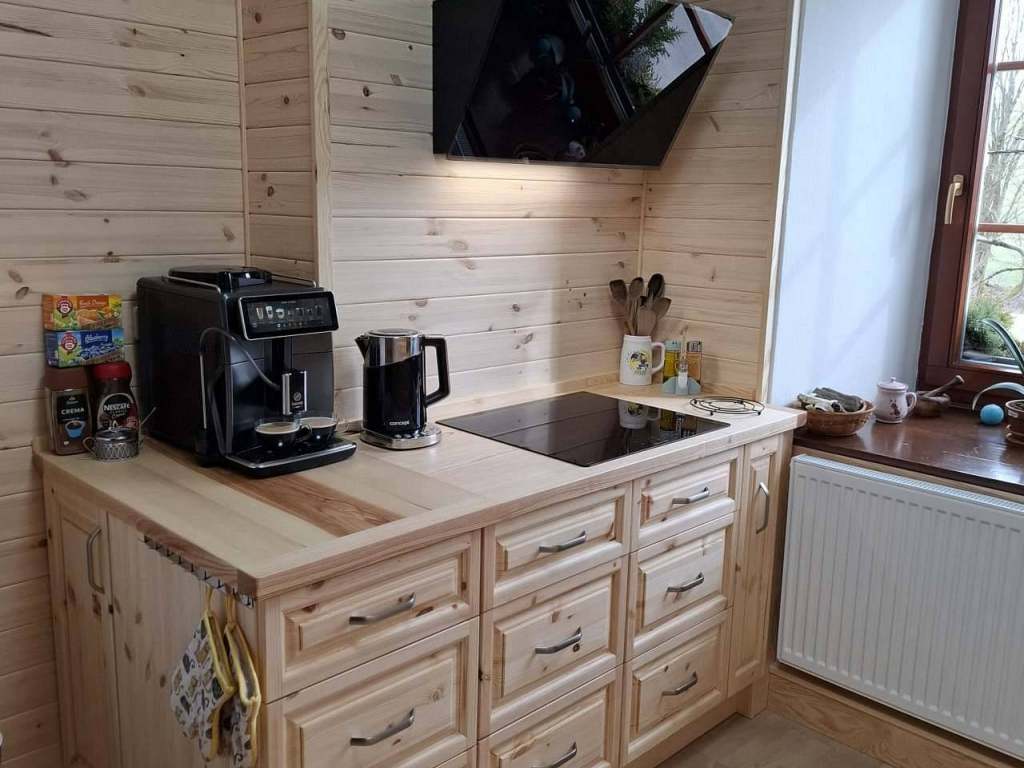Vnitřní krb! Chytré Televize Samsung ze Satelitem - (neplacené kanály) na obou společenských místnostech, také pokoji č.: 2.a 3.(pokoj č.: 1.má TV bez satelitu ze set - top boxem. V horní i dolní společenské místnosti mini věž. V celé chatě i na zahradě je také volná Wifi síť. Vybavené dvě kuchyně pro vlastní vaření (příbory, talíře, hrnce, pánve, sklenice, 3.lednice, 2.myčky na nádobí, 2.sporáky, 2.rychlovarné konvice, 2.mikrovlnné trouby, 2.topinkovače, kmremoska atd. ) Jedna kuchyně se nachází v přízemí a druhá v podkroví, která je nová vyrobená na míru ze dřeva z masívu pracovní deska Jasan a zbytek Borovice - doplněná vestavěných spotřebičů jako je myčka nádobí, horkovzdušná trouba, mikrovlnná trouba, gril a indukční deska.