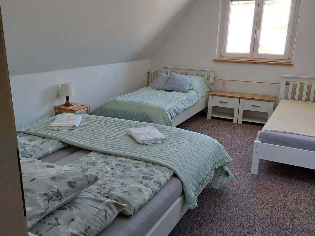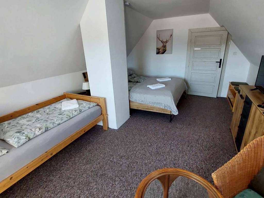 3.Pokoj 3+0 (třílůžkový pokoj), koupelna s vanou, lednice, koutek na přípravu kávy/čaje, oddělené WC