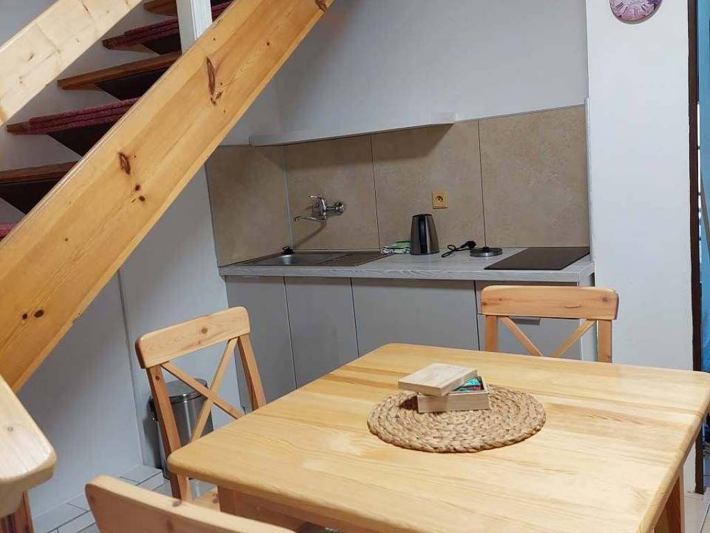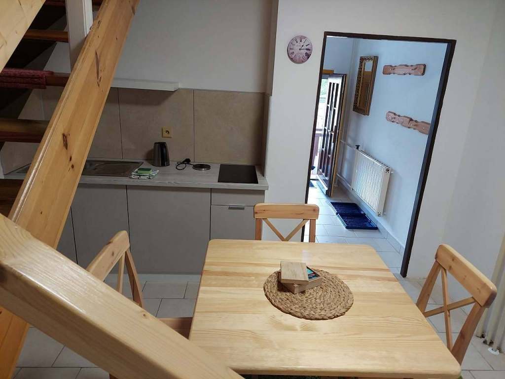 2.Mezonetový apartmán 7+0 (patrový apartmán se dvěma ložnicemi 3 + 4 lůžka), koupelna s vanou, oddělené WC, kuchyňský a jídelní kout