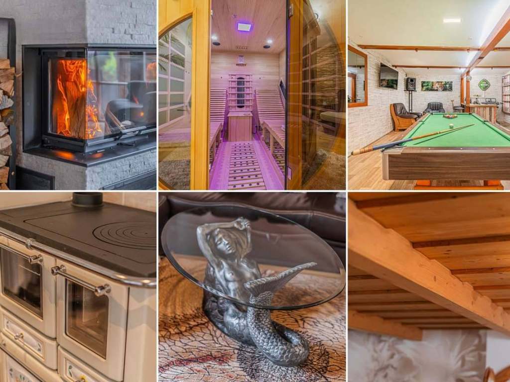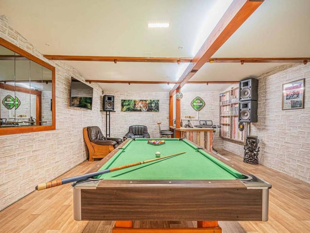 Kompletně vybavená kuchyně, kávovar, lednice, myčka na nádobí, rychlovarná konvice, nádobí. Sociální zařízení, ručníky, povlečení, TV, internet, společenská místnost, herna s biliárem, šipky.