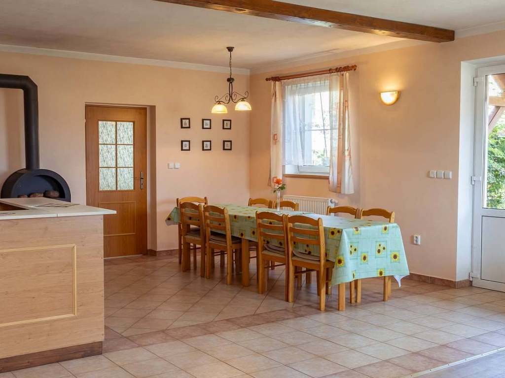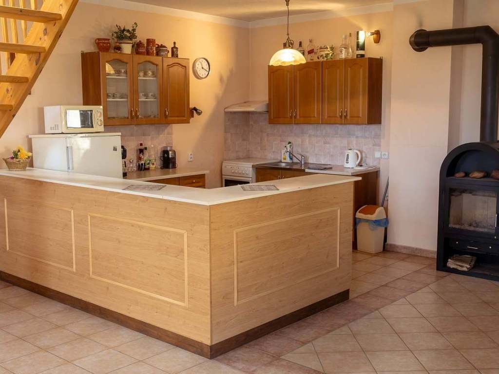Obě kuchyně vybaveny el. sporákem, mikrovlnnou troubou, rychlovarnou konvicí, lednicí, překapávačem. Dvě sat. televize, CD přehrávač. Možnost připojení k internetu. Venkovní terasa, ohniště, gril.