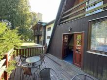 Ve DRUHÉ části místnosti se nachází pohodlné sezení, televize, stůl na stolní tenis, knihovna, či prostorná terasa s venkovním posezením.