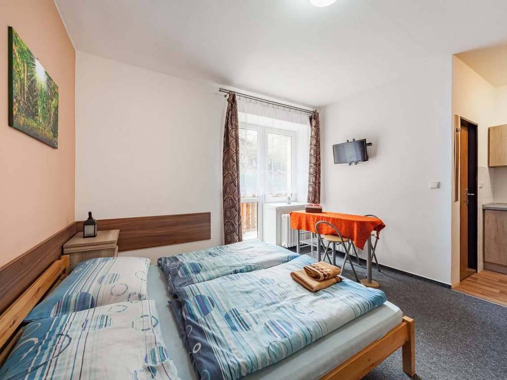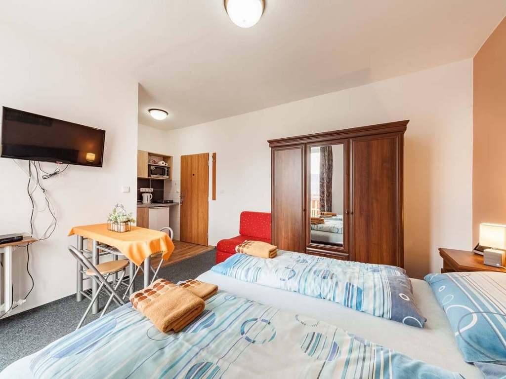 Penzion nabízí ubytování v nově zrekonstruovaných apartmánech s plně vybavenou kuchyňkou, televizí s plochou obrazovkou, samostatnou koupelnu s wc, balkón a Wi - Fi.