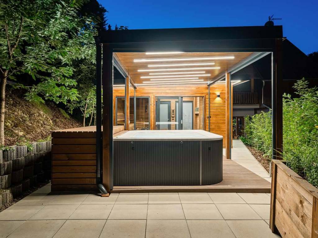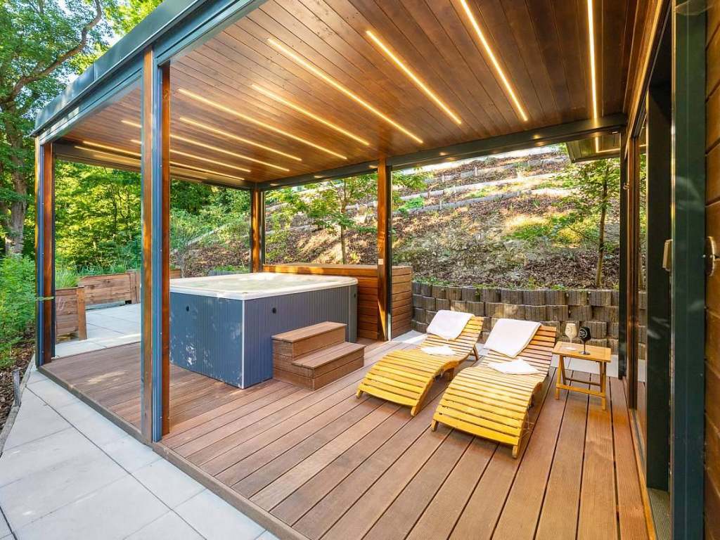 NOVINKA v penzionu je krásné venkovní privátní wellness s finskou aroma saunou a velkou vířivkou!