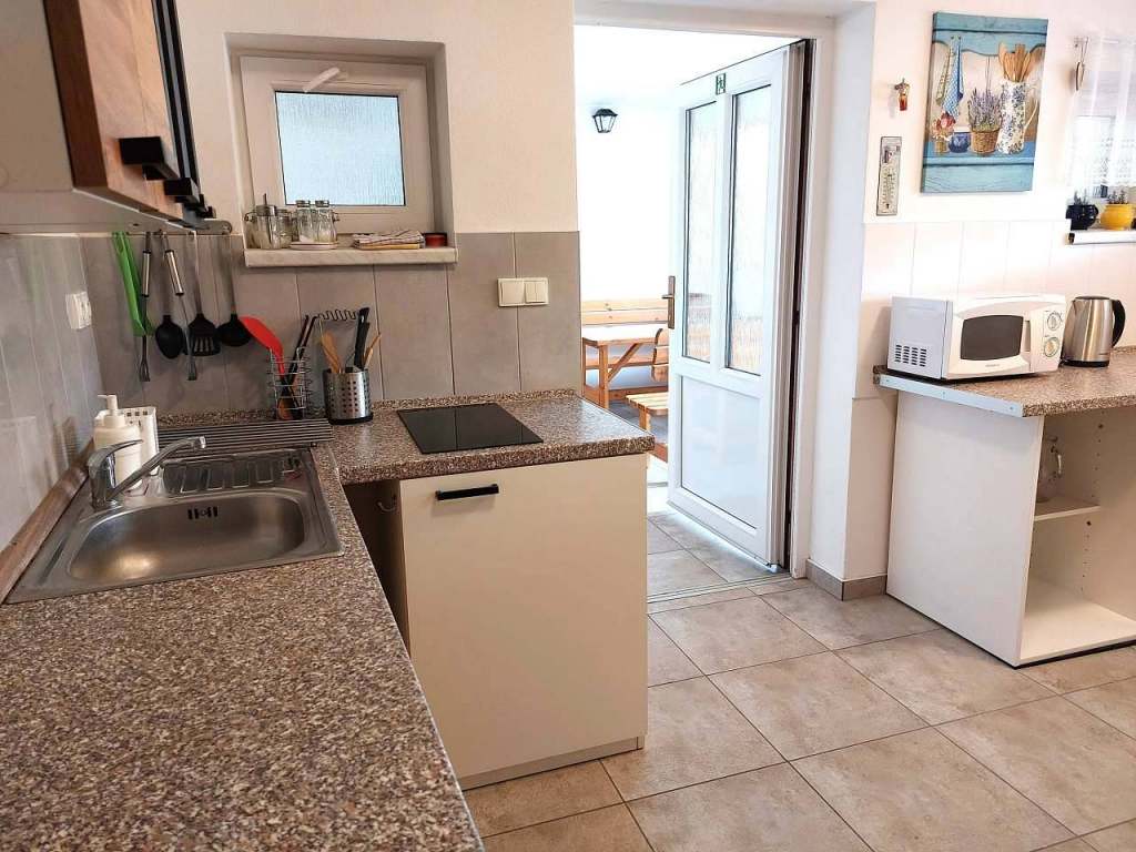 - kuchyni s mikrovlnnou troubou, varnou konvicí, indukčním vařičem, horkovzdušnou fritézou, kávovarem, překapávačem na kávu, plně vybavenou kuchyňským nádobím