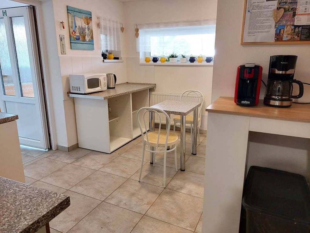 Součástí vybavení objektu je plně vybavená kuchyně s mikrovlnnou troubou, varnou konvicí, překapávačem, indukčním vařičem, kávovarem, velkou elektrickou pánví. Hned vedle najdete společenskou místnost s posezením.