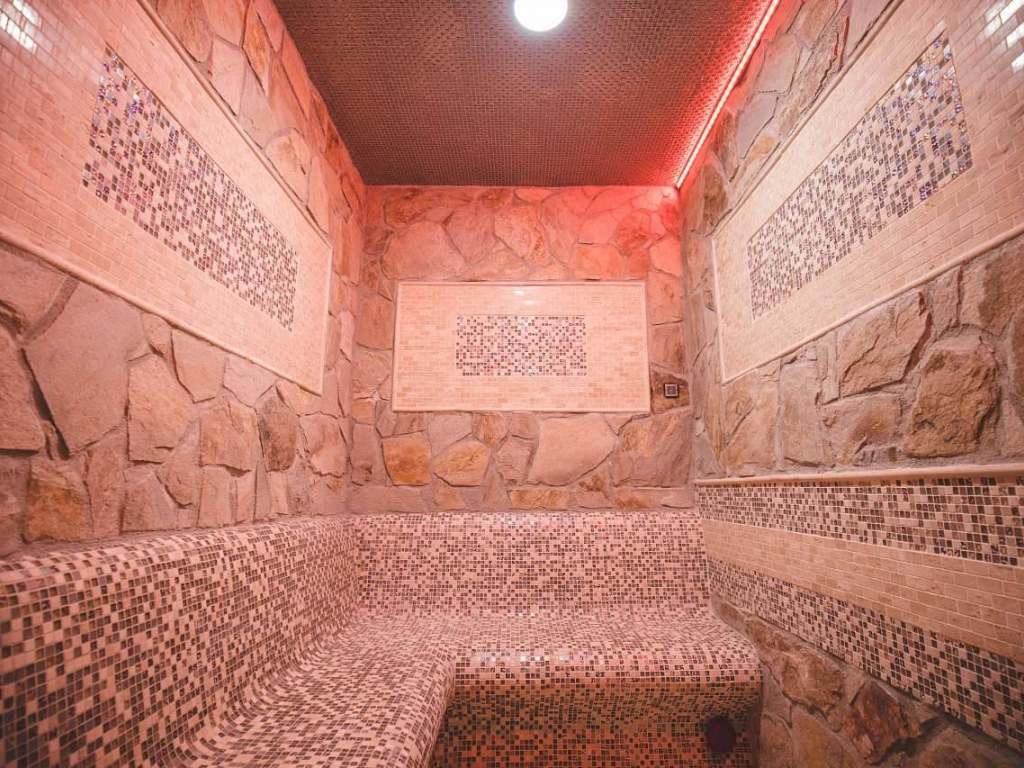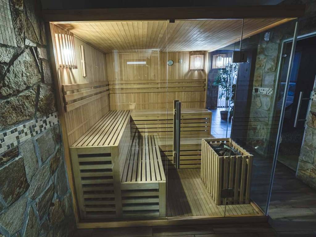 Wellness, pární sauna, finská sauna, vířivka, relaxační zóna.