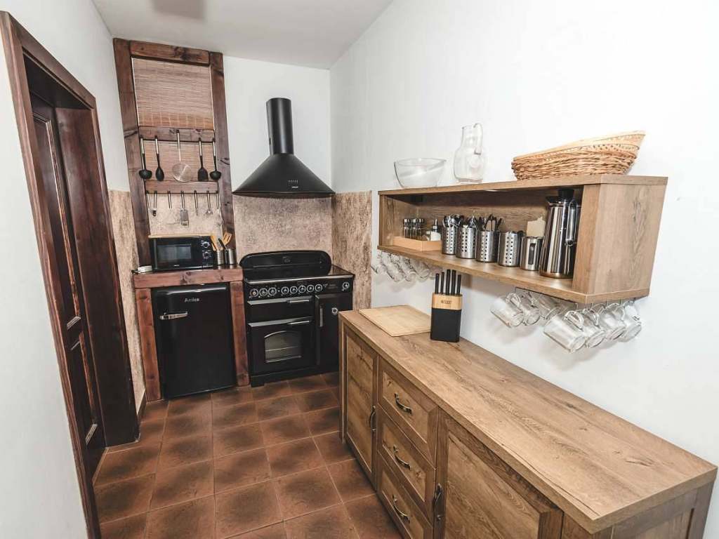 Kuchyně suterén - profi sporák, mrazák, proslkený chladicí vitrína, myčka