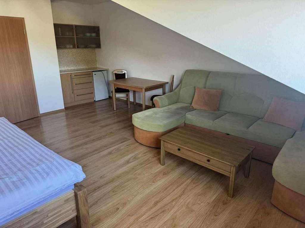 Pokoj č. 1: Tento pokoj je největším pokojem v penzionu. Nachází se zde i malá kuchyňská linka, která je vybavena nádobím a lednici. U tohoto kuchyňského koutu se nachází jídelní stůl na který navazuje velká prostorná sedací souprava, která v případě potřeby slouží jako přistýlka pro dvě osoby. Dominantou každého pokoje je velká manželská postel z masivního dřeva.