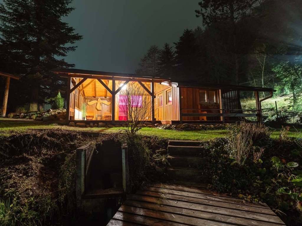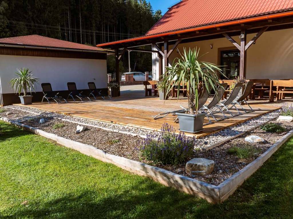 Součástí areálu je velká zahrada s venkovním posezením u ohně s možností grilování, venkovní houpačky a domeček pro děti se skluzavkou, trampolína, ruské kuželky, volejbalové hřiště a bazén.