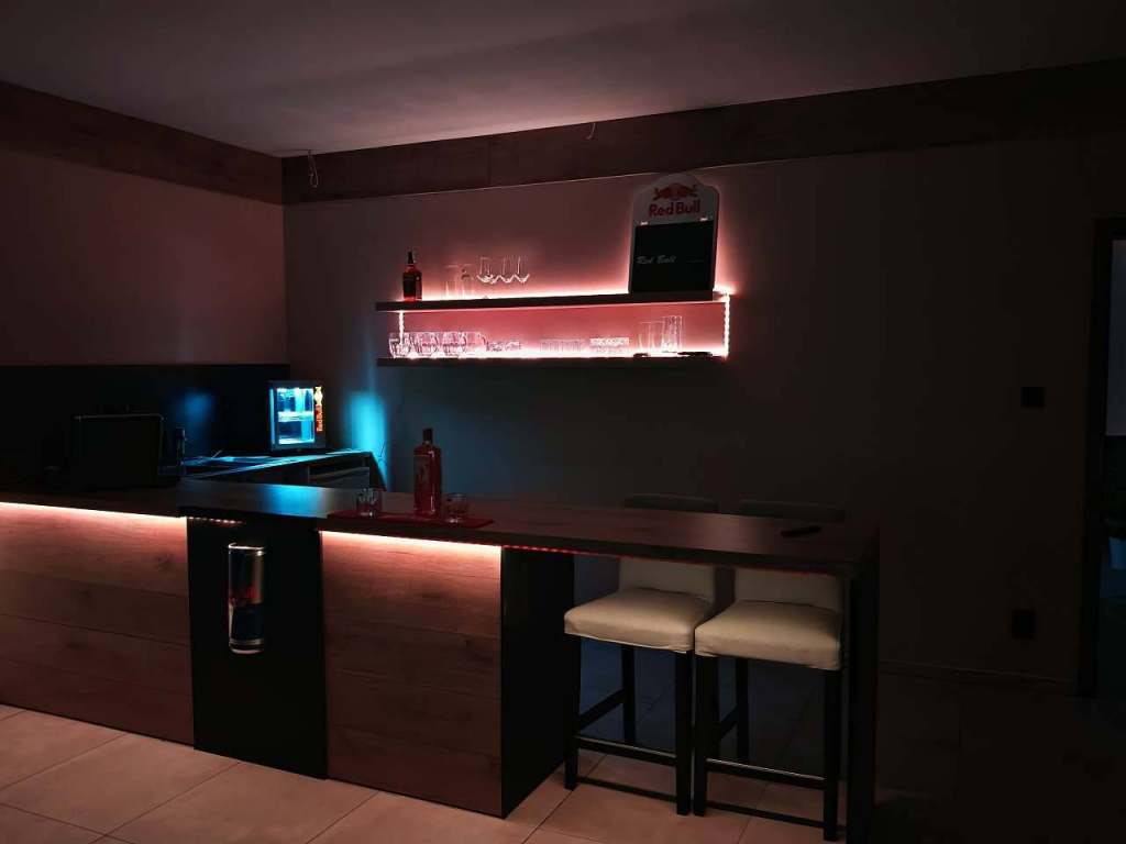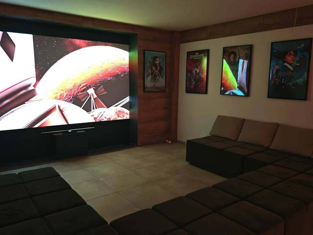 Společenská místnost cca 40m² s barem a projektorem promítací plocha 3m pro maximální zážitek z filmů, sportovních přenosů (HBO GO a sportovní kanály v ceně)