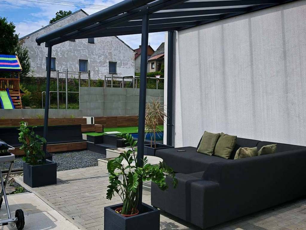 V letě k dispozici venkovní bazén s nočním osvětlením, který je oplocen 2 metrovým plotem pro naprosté soukromí při relaxaci. Venkovní terasa s grilem doplněná o pod úrovňové posezení s ohništěm pro cca 16 osob. Finská sauna s himalájskou solí navržena pro co nejvíce záporných (zdraví prospěšných)iontů