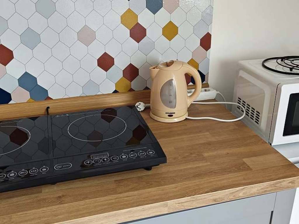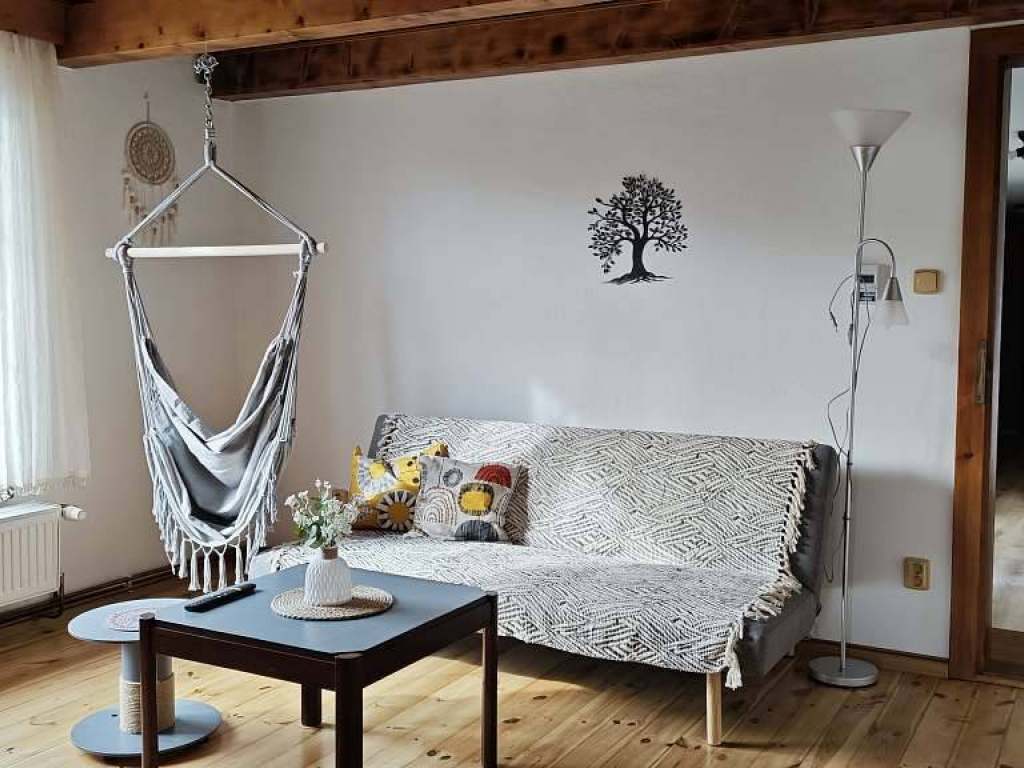 Kompletně vybavená kuchyňka, lednice, indukční vařič, mikrovlnná trouba, rychlovarná konvice, jídelní stůl se židlemi a lavicí. Obývací pokoj: pohodlná pohovka, konferenční stolek, závěsné křeslo a TV. Venkovní posezení se zahradním grilem.