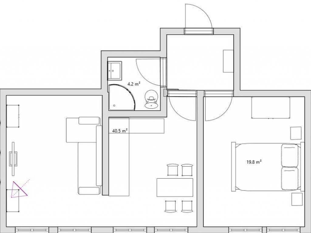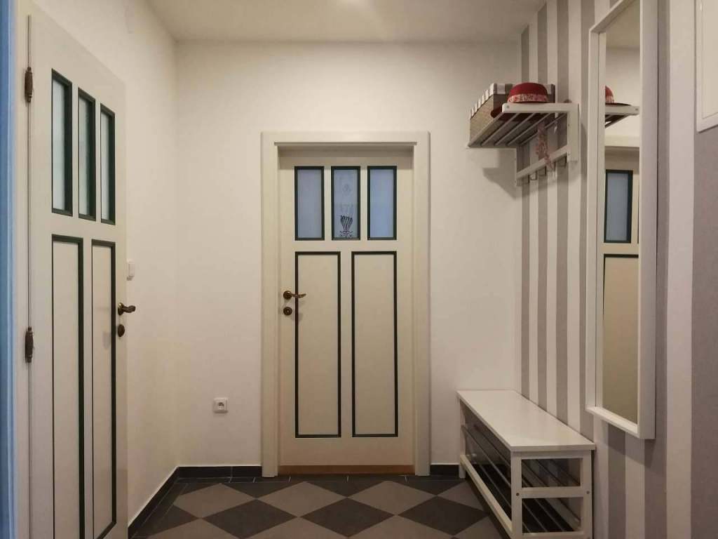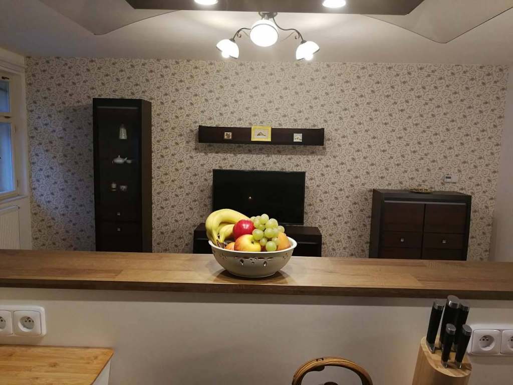 Apartmá pana poštmistra - dispozice 2+1 se samostatnou klimatizovanou ložnicí a kuchyní propojenou s obývacím pokojem. Prostorná předsíň se šatní stěnou.