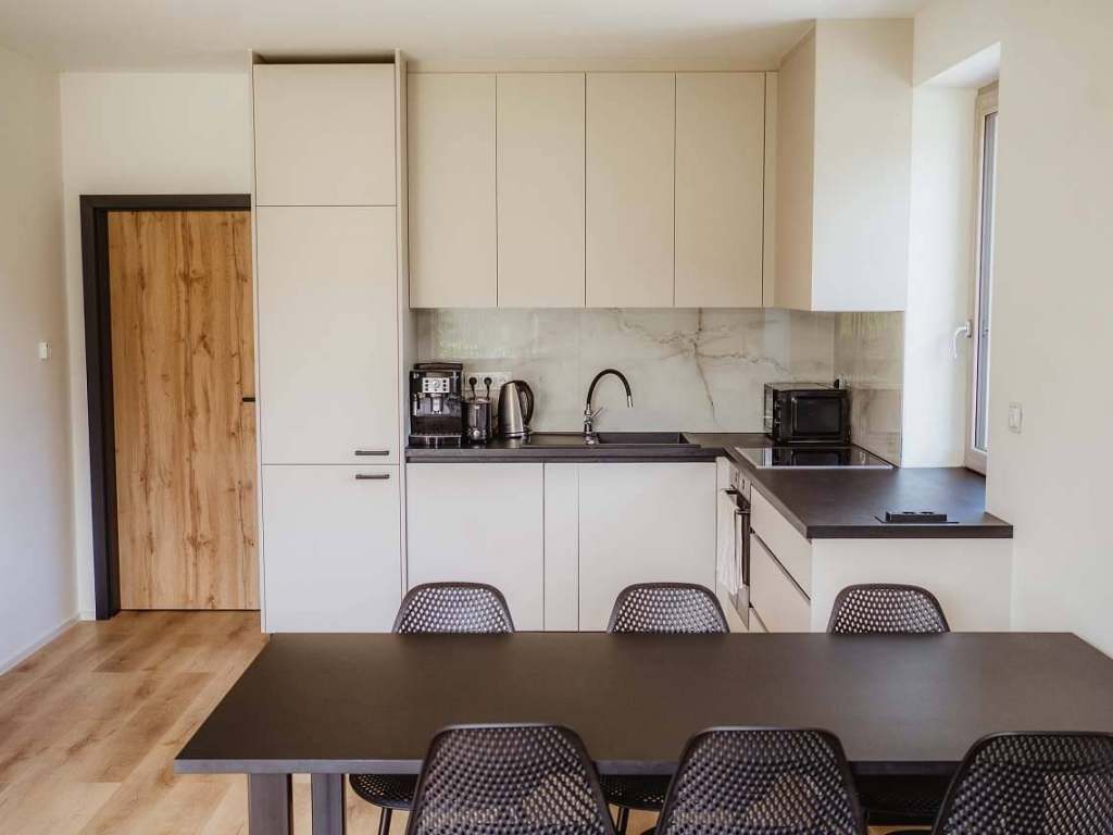 Každý apartmán má plně vybavenou kuchyň pro každodenní vaření s mikrovlnnou troubou, indukční deskou, troubou. Ve spodním apartmánu je kávovar na zrnkovou kávu. V kuchyni najdete základní potraviny jako je olej, mouka, těstoviny, rýže a koření a káva do kávovaru.