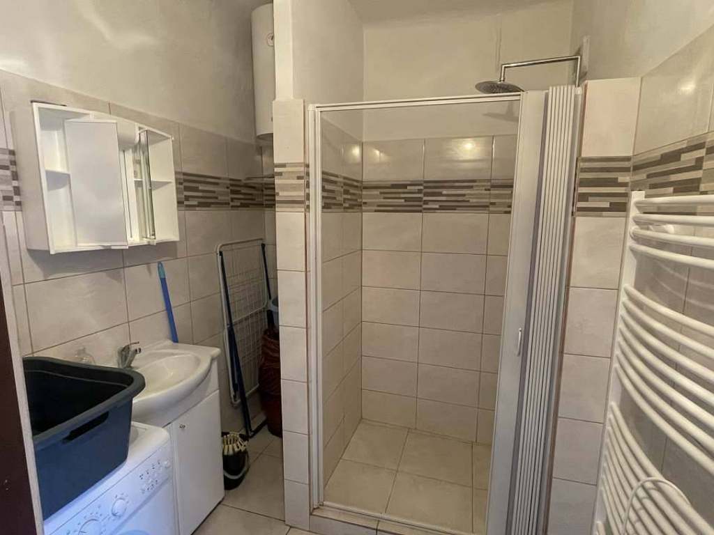 Koupelna vybavena sprchovým koutem, pračkou a WC.