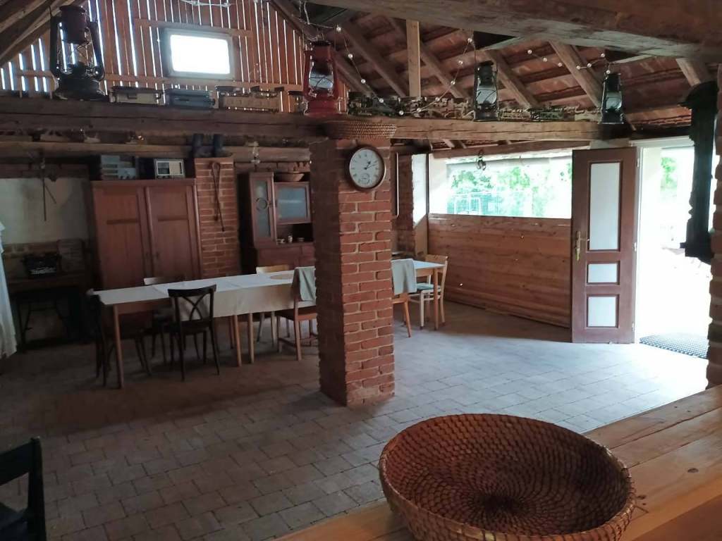 Pokud je chalupa pronajata jako celek, hosté mohou využívat také venkovní kuchyň s posezením ve stodole. Tento prostor je k dispozici od jara do podzimu, protože není vytápěný. U velkého stolu se zde může pohodlně usadit až 30 lidí, proto je chalupa vhodná také pro menší svatby, rodinné oslavy nebo setkání přátel.