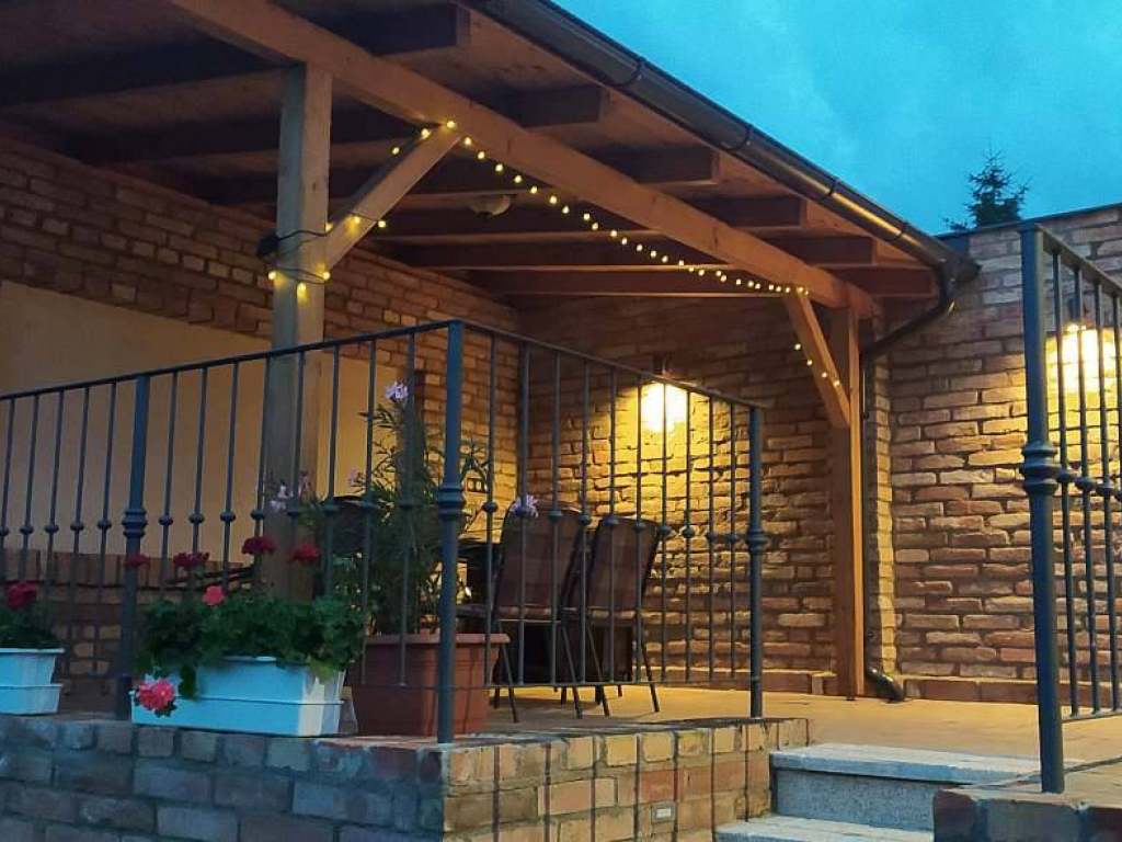 Oba naše apartmány se nachází v zahradě našeho domu. Každý má vlastní vchod, vlastní sociální zařízení, vlastní plně vybavenou kuchyň (apartmán Sýpka má myčku nádobí), vlastní pergolu. Jsou obklopeny zahradou. Oba mají k dispozici lisovnu - společenskou místnost s posezením pro 10 osob s malou kuchyňskou linkou a vinotékou s nejlepšími víny z okolních vinic. Přístup k apartmánům je možný zahradou. Parkování je možné v této naší uzavřené zahradě. K úschovně vašich kol můžete využít bezpečnou kolárnu, kde si můžete dobíjet svá elektrokola. Večerní posezení pod pergolou vám jistě zpříjemní zahradní gril na dřevěné uhlí.