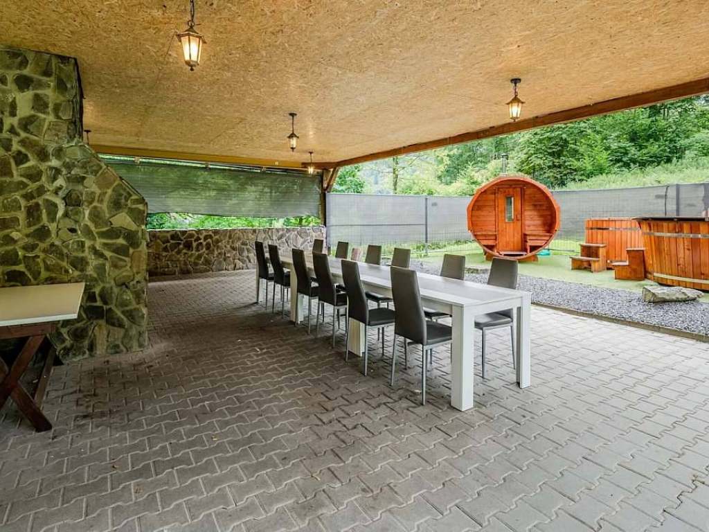Venkovní gril, sauna, koupací sud, hřiště, ping pong, dětská herna.