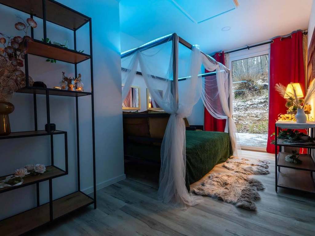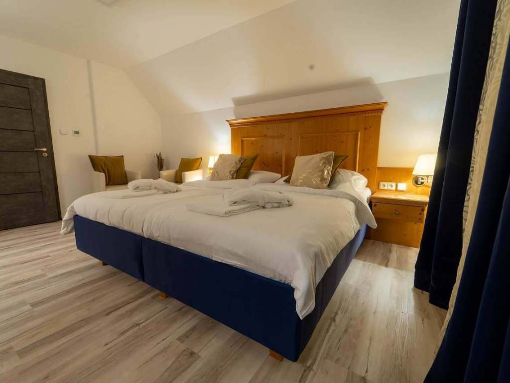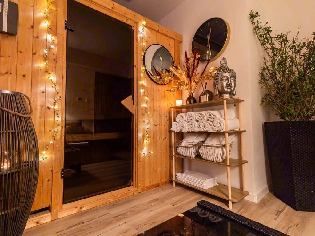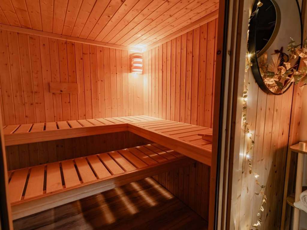 Apartmán č. 7 nabízí dvě místnosti – v jedné najdete saunu, ve druhé manželskou postel s přímým vstupem na terasu.