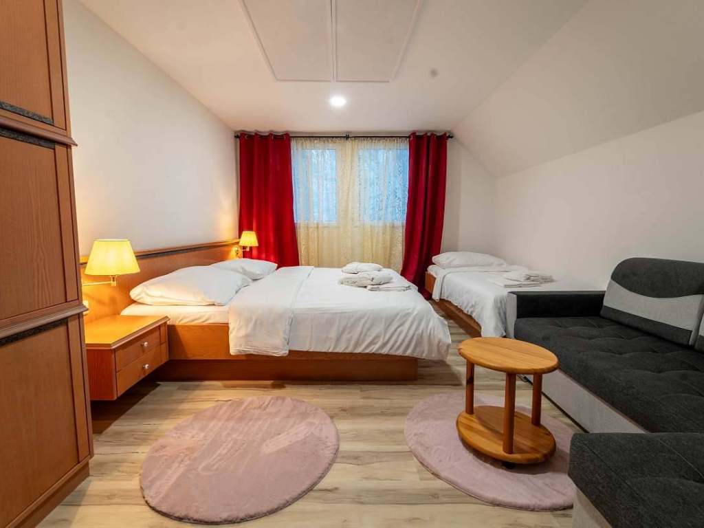 - Pro děti: pískoviště, trampolína, prolézačky, houpačka, k dispozici dětská postýlka