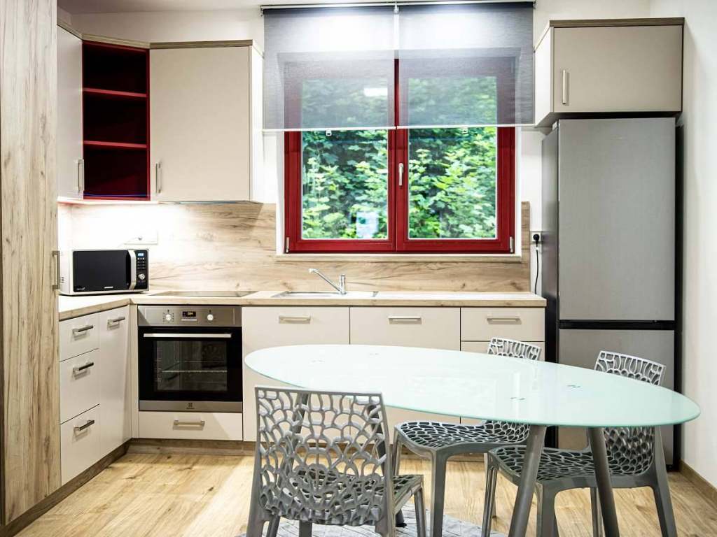 Všechny apartmány v Riverside Apartments v Českém ráji mají balkon s krásným výhledem na řeku Jizera, pohodlnou manželskou postel, plně vybavenou kuchyň, sprchu, jídelní stůl a židle, 4K LED TV se streamovacími kanály, rozkládací pohovku v obývacím pokoji a dostatek úložného prostoru ve skříních a na policích. Parkování je možné přímo v areálu a úschovna lyží, kol a dalšího vybavení je zdarma. Bezpečnostní kamery monitorují budovu, parkoviště a úschovnu vašeho vybavení 24 hodin denně. Snídaně v Moment Café v přízemí budovy je k dispozici na vyžádání.
