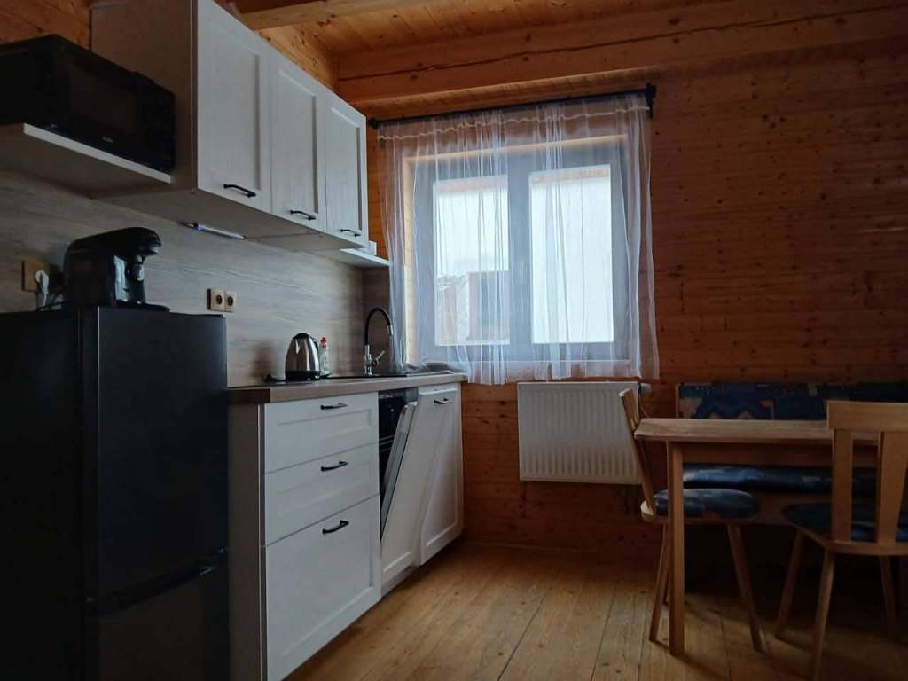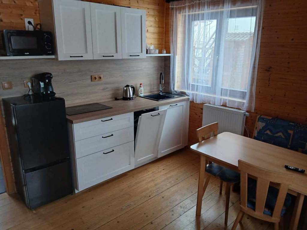 Kuchyně je plně vybavena. V obýváku je rozkládací gauč a televize.