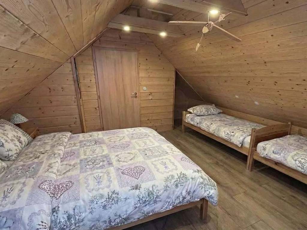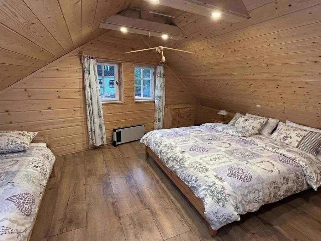 Nová dřevěná roubenka Ráj v Tachově nabízí romantické ubytování s výhledem na hrad Trosky. Roubená chalupa se nachází 500m od hradu Trosky v klidné oblasti Českého ráje, v okolí pískovcových skal a rybníků. Výhled na hrad Trosky přímo z chaty Vás jistě přiláká podívat se blíže a prohlédnout si kraj z výšky. U chalupy je oplocená obytná zahrada 1450m², zahradní posezením pod pergolou, ohniště s grilem, houpačka, trampolína, bazén, pískoviště pro děti a 3x stání pro auto.