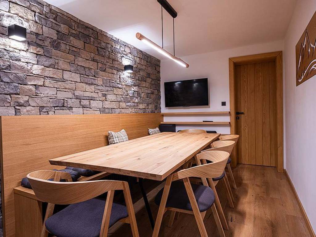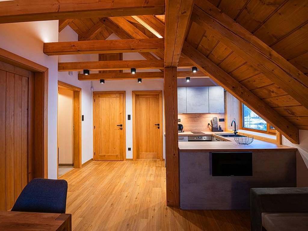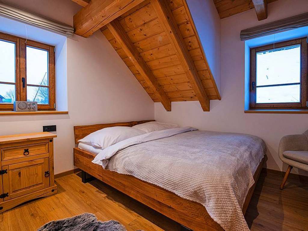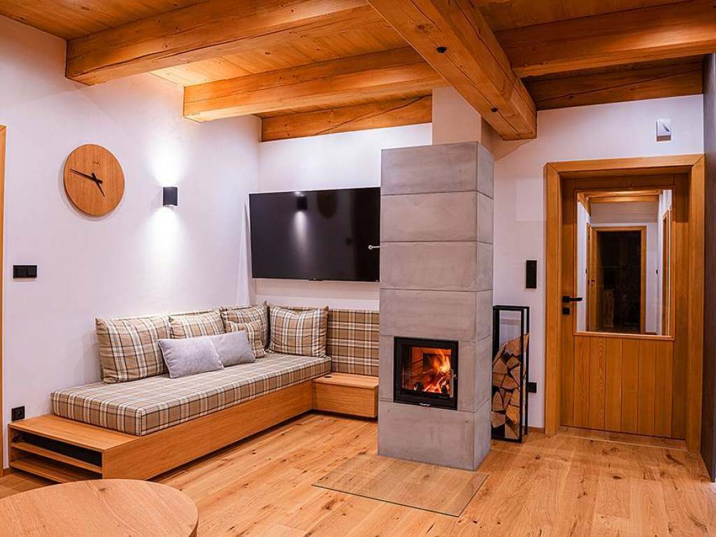 3.apartmán (horní)SUD: 1x dvoulůžková ložnice (manželská postel), společenská místnost (TV, rozkládací pohovka - 2x přistýlka), kuchyňský kout, koupelna.
