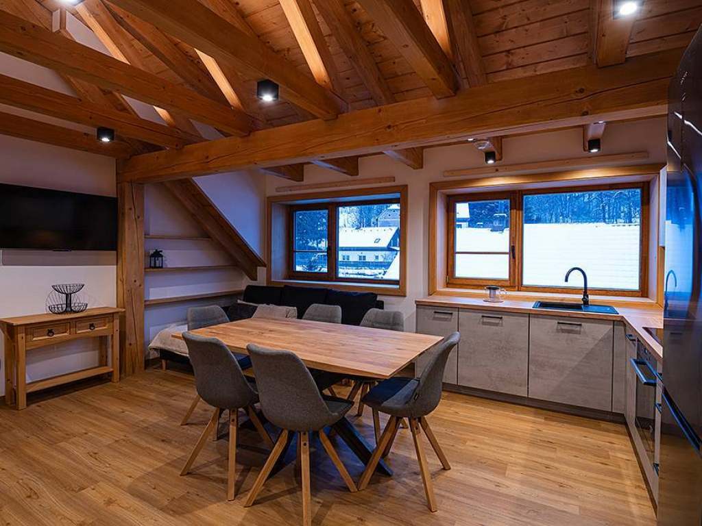 Nově postavená rekreační chalupa v Krkonoších se saunou, krbem, profi pípou (na dotaz za poplatek), terasou, grilem a WiFi internetem, stolním tenisem, nedaleko lyžařských areálů ve Velké Úpě, Peci pod Sněžkou či v Janských Lázních. Chalupa disponuje jedním apartmánem v přízemí a dvěma apartmány v horním patře.
