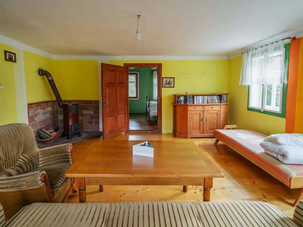 Chalupa: Chalupa s ubytovací kapacitou 12 osob v 5 ložnicích, samostatná koupelna, kuchyně a obývací pokoj.