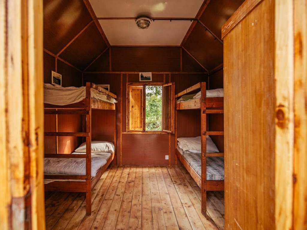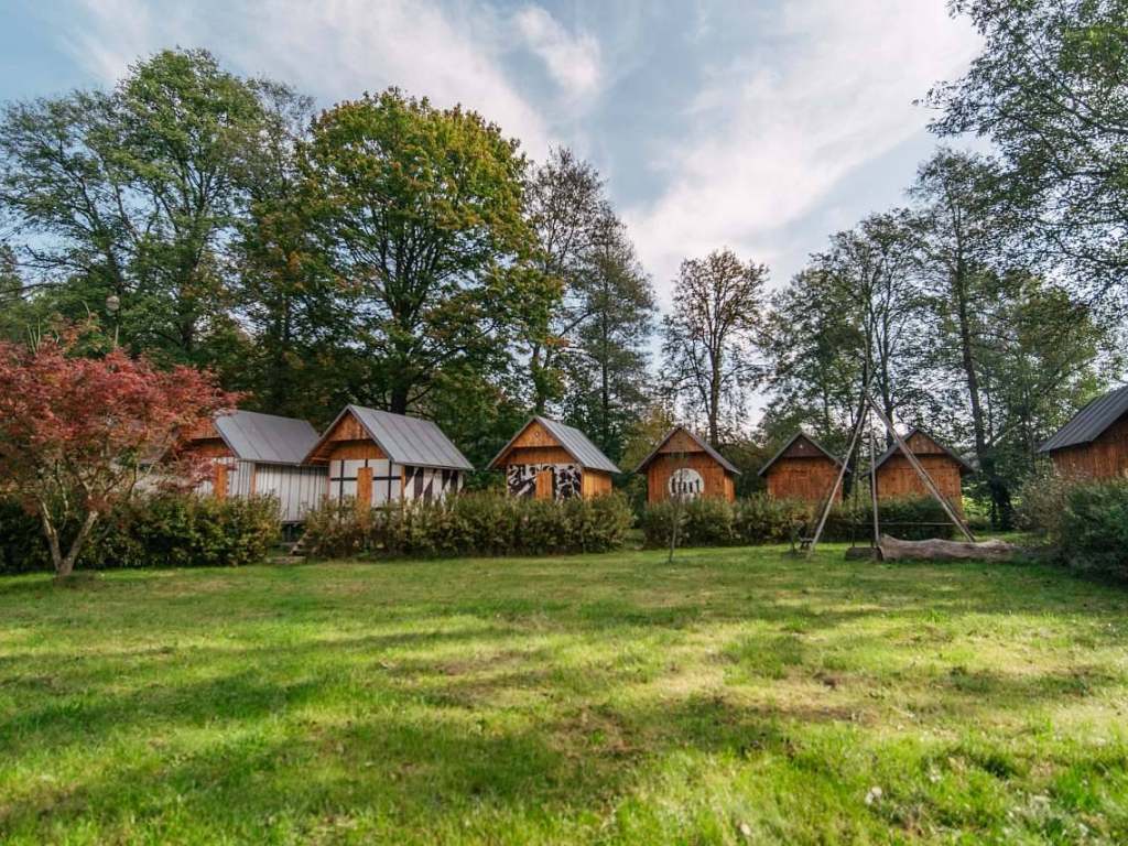 Chatky: 8 dřevěných chatek s kapacitou 28 osob. Společné sociální zázemí a kuchyň v chalupě.