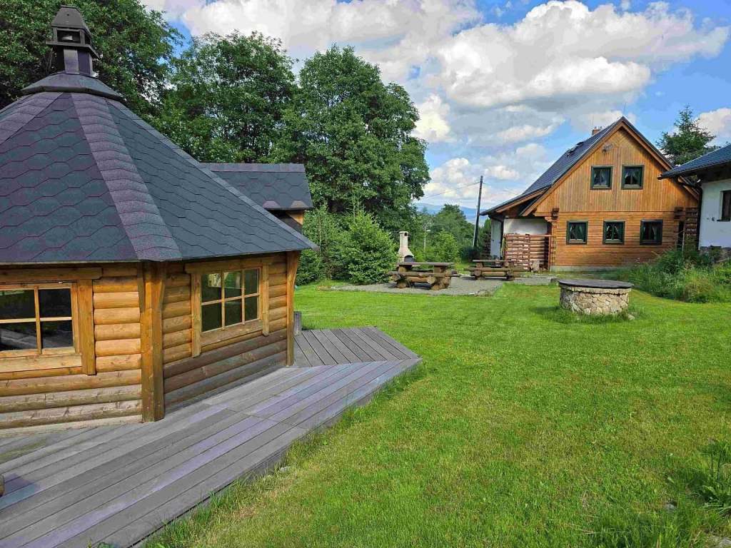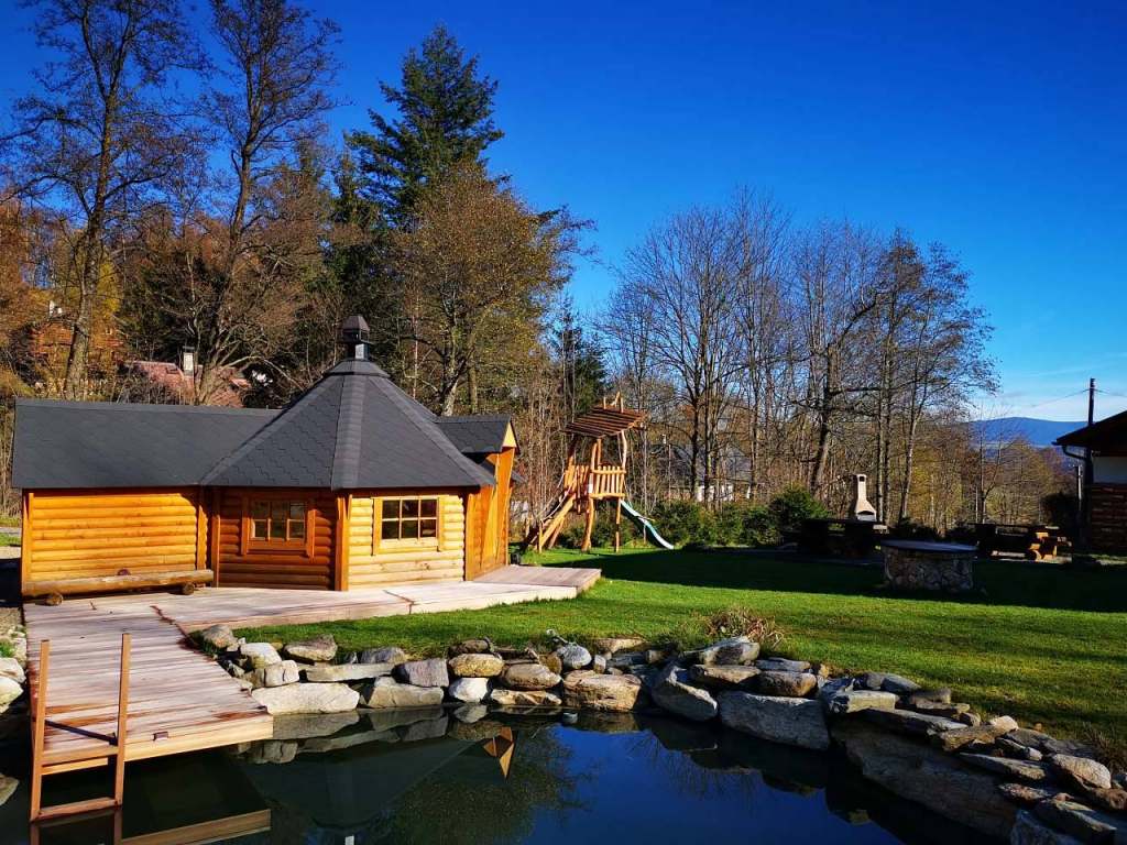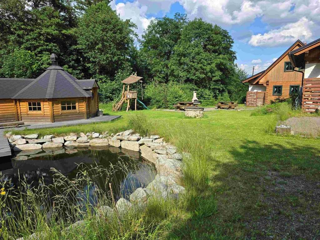 Na společné pozemku je k dispozici nově postaveny grilovací domek se saunou a koupací jezírko.