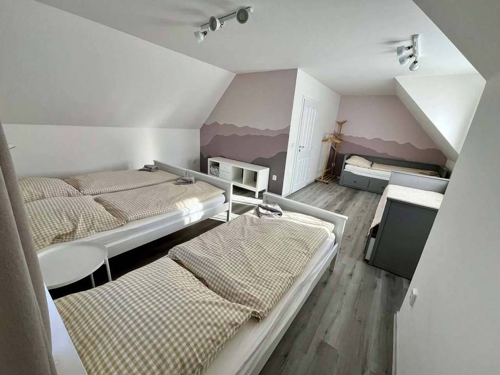 Apartmán A - dvě ložnice po 3+1 lůžkách, celodenní oslunění, kuchyně / společenská místnost, koupelna, šatna, samostatný vchod, lednice, sporák, mikrovlnka, myčka, vybavení kuchyně.