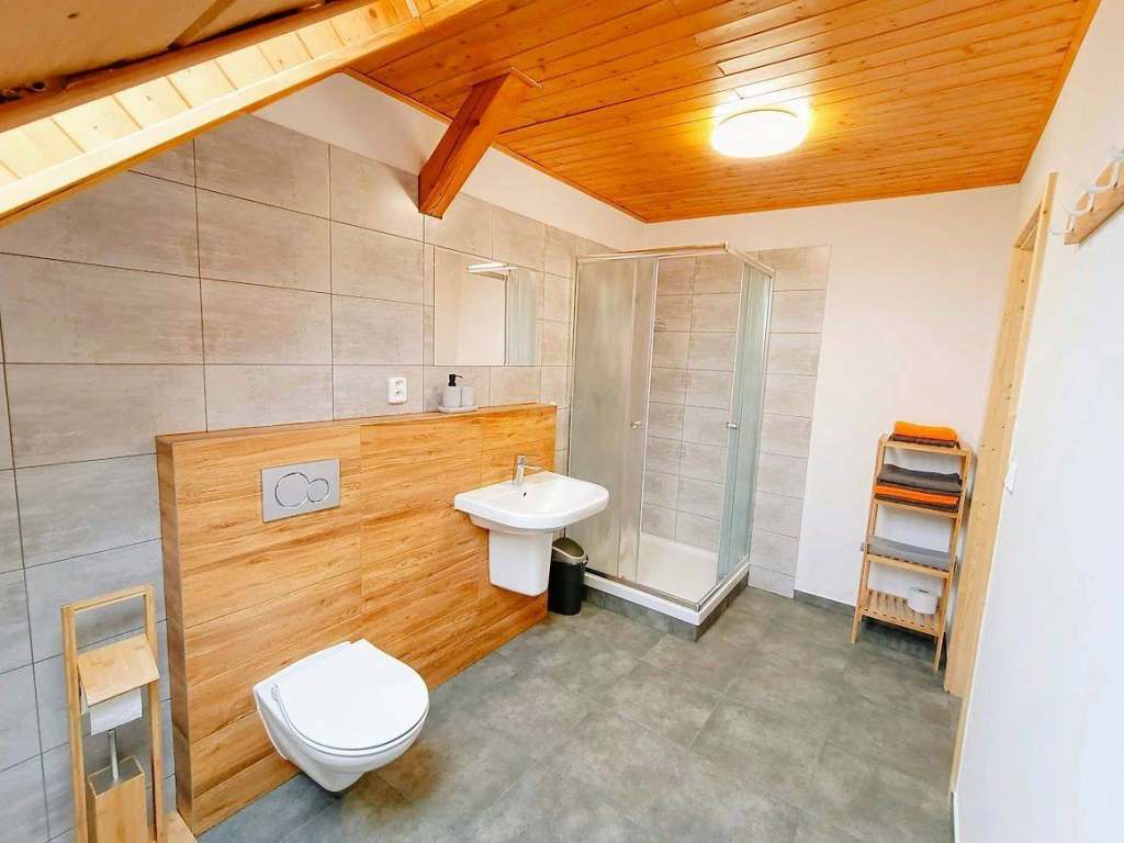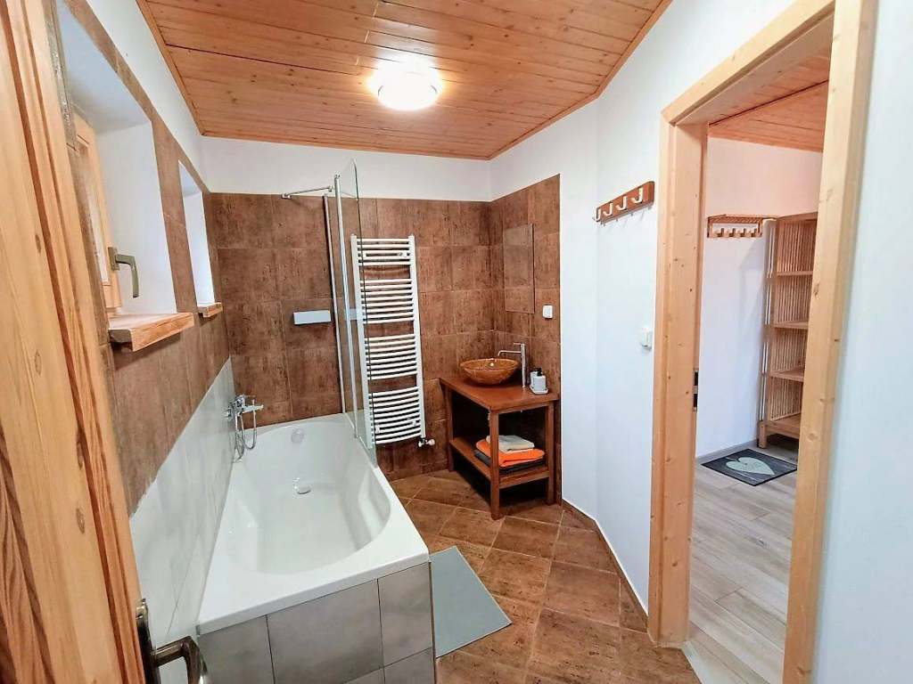 1 apartmán 4-lůžkový, 3 ložnice - Sociální zařízení: sprchový kout, vana
