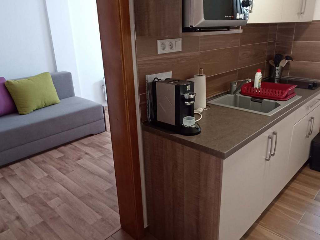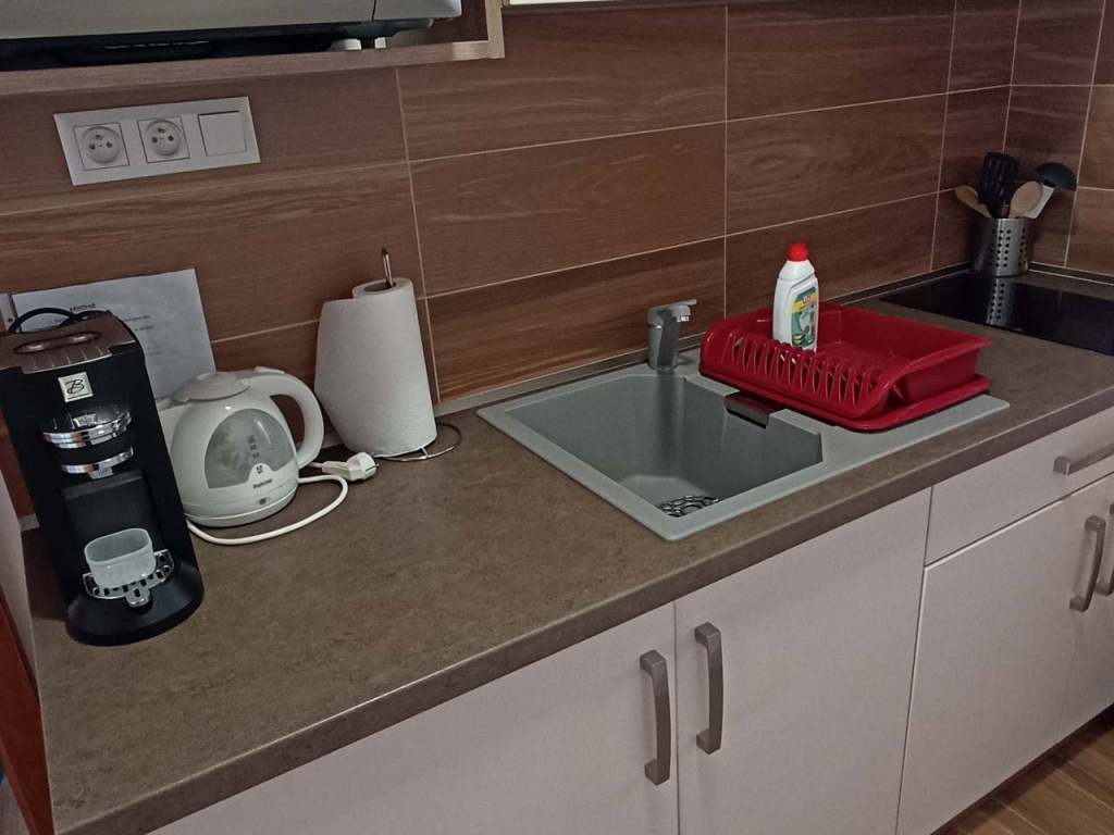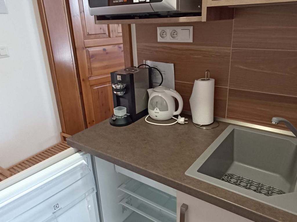 Dolní pokoj je pro 2 osoby s manželskou postelí, vybavený kuchyňským koutem, vlastním vchodem a vlastním sociálním zařízením. K dispozici máte zdarma povlečení, ručníky, veškeré toaletní potřeby, kávu, čaj, fén..